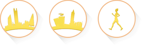 外圈为环形赛道的图形设计,更增添了城市高楼大厦、葱
